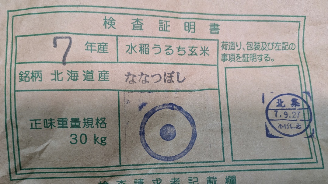 令和7年新米”北海道産ななつぼし”が入荷しました!