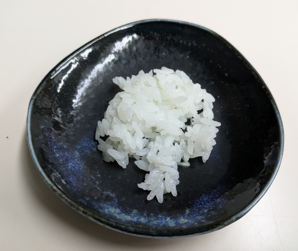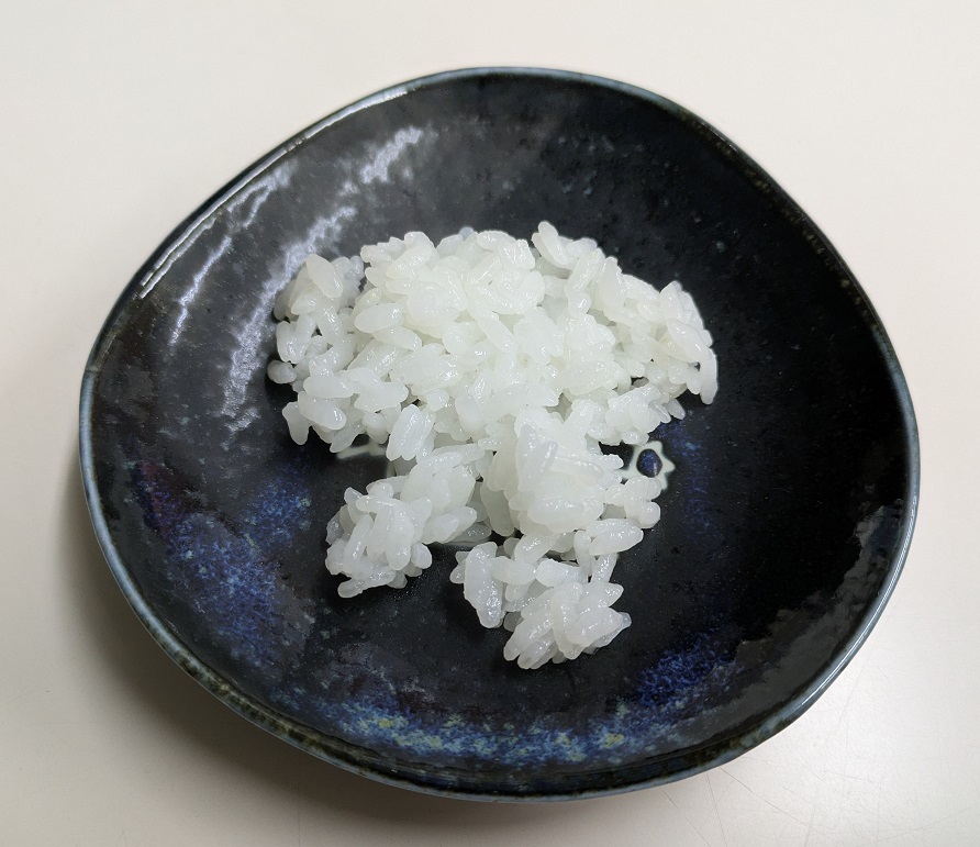 あっさりとしていて、食感はやわらかめ、冷めた状態では唾液と混ざると味のするご飯です。