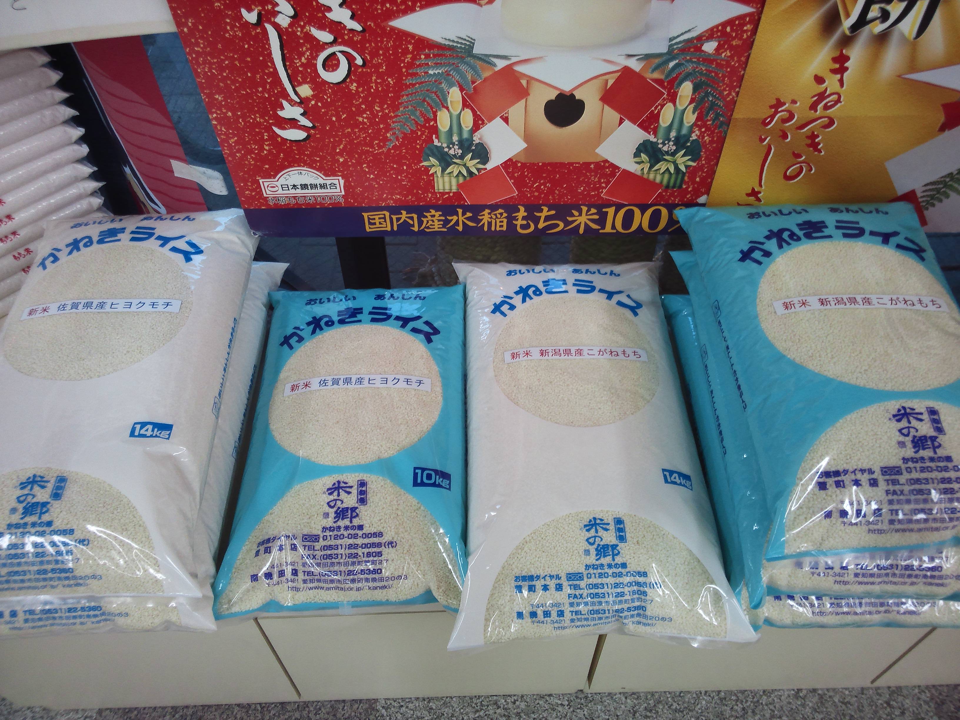 もち米、正月用の鏡餅、昨年人気の高かったきな粉、雑煮用花かつおに加え
