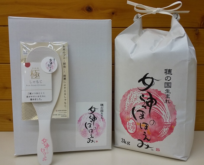 ”女神のほほえみ”白米3kgとロゴ入りしゃもじのギフト販売始めました!!