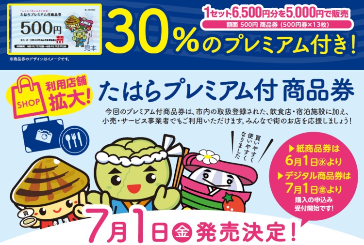 当店では、7月1日から始まるたはらプレミアム付商品券取扱店です。
