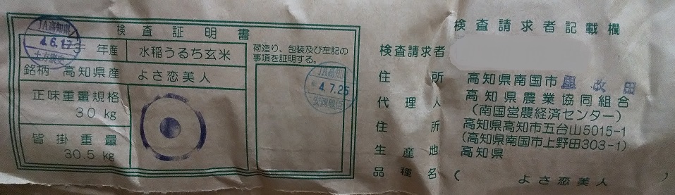 令和4年産新米第1便”高知県産よさ恋美人”が入荷しました!!