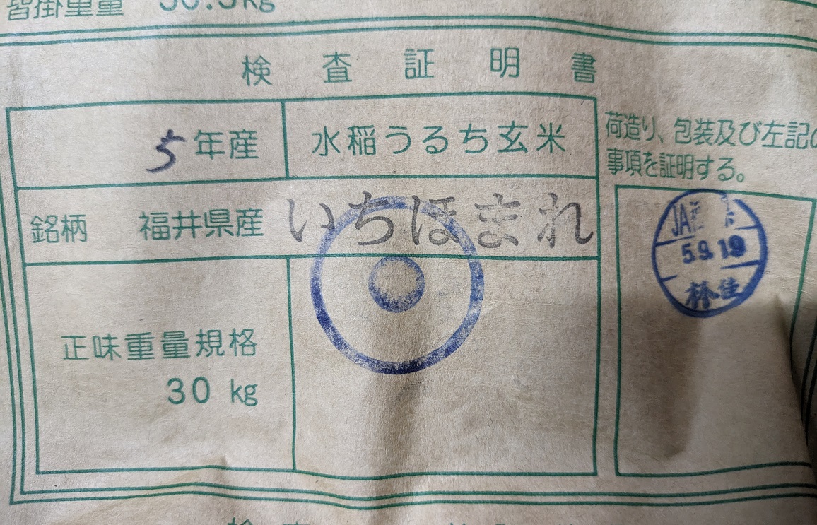 令和5年新米”福井県産特別栽培米いちほまれ”が入荷しました!