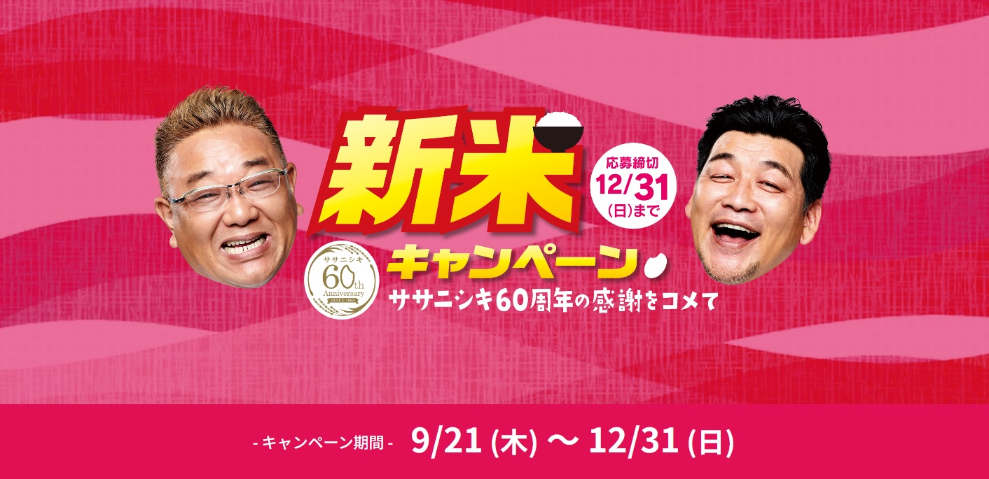 現在、新米キャンペーン ササニシキ60周年感謝をコメてキャンペーンを行っております。