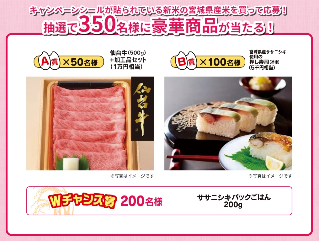 ただいま、宮城県産の新米を購入していただくと豪華賞品が当たる