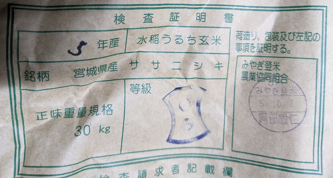 令和5年”宮城県産特別栽培米ササニシキ”入荷しました!!