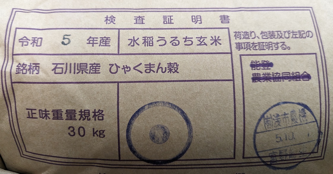 令和5年新米”石川県産ひゃくまん穀”が入荷しました!!