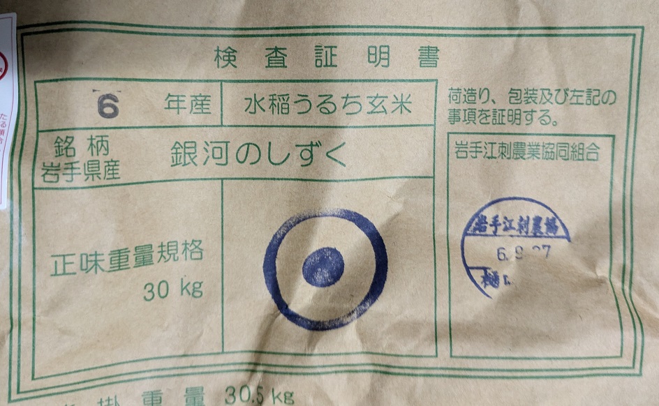 令和6年新米”岩手県産特別栽培米銀河のしずく”