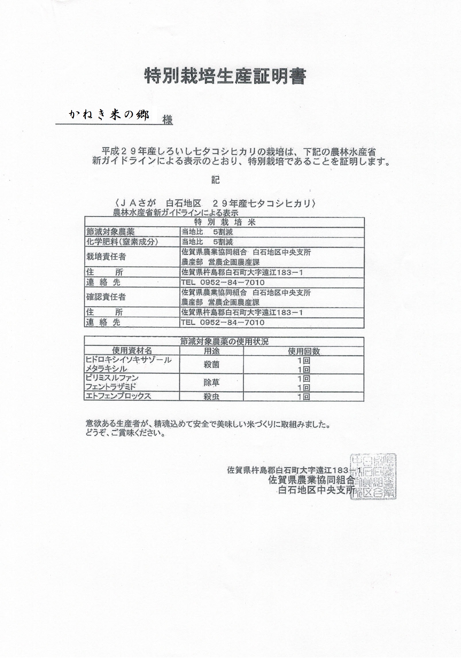 平成29年佐賀県産七夕コシヒカリ入荷しました!!