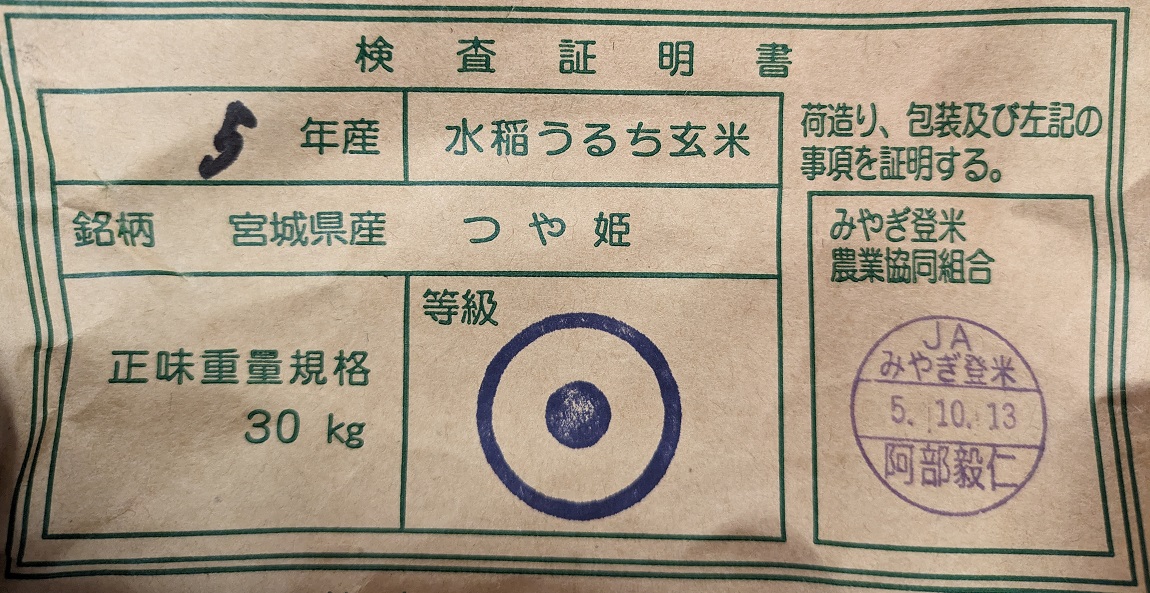 令和5年新米”宮城県産特別栽培米つや姫”入荷しました!!