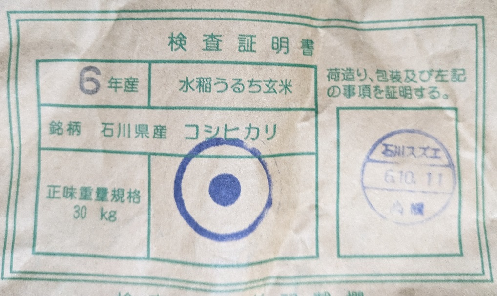 令和6年新米”石川県能登産カルゲンコシヒカリ”入荷しました!