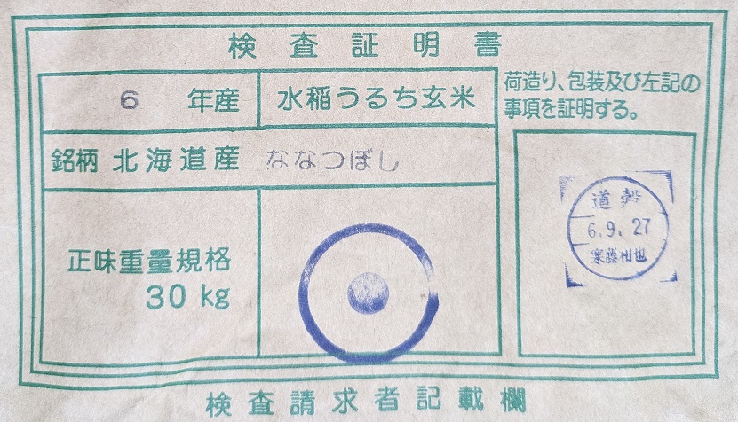 令和6年新米”北海道産ななつぼし”入荷しました!!