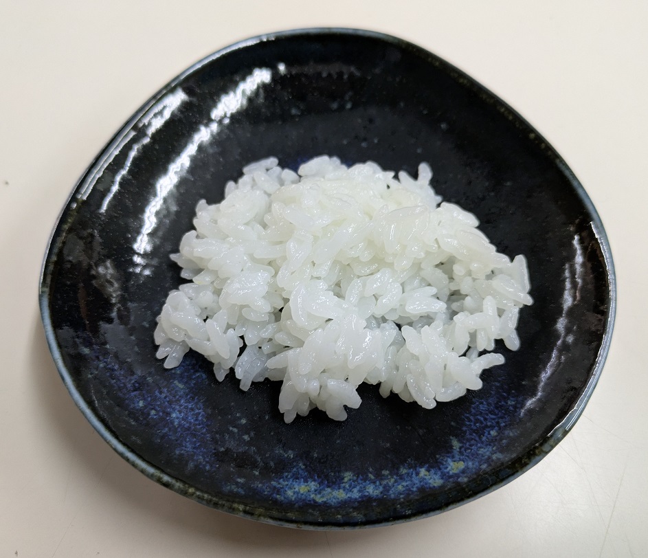 炊き上がりはピカピカで、ほど良い粘りの食感、旨みのあるごはんです。