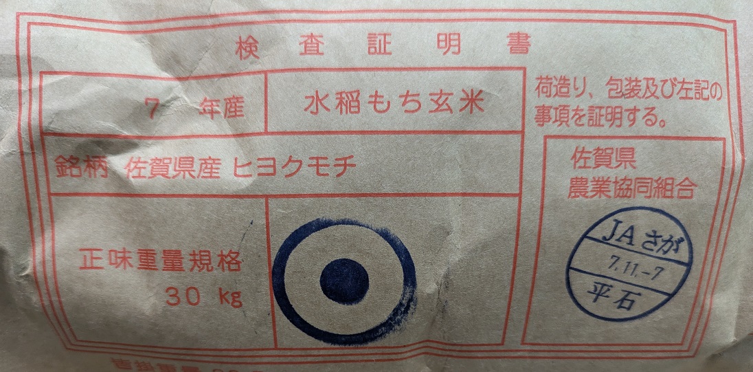 令和7年新もち米”佐賀県産ひよくもち”入荷しました!!
