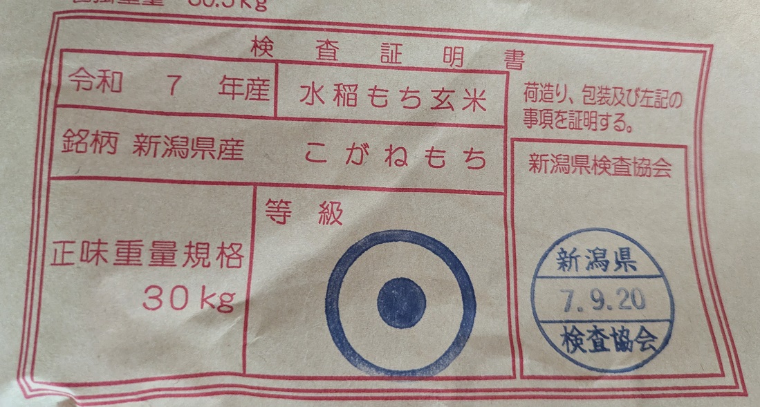 令和7年新もち米”新潟県魚沼産こがねもち”入荷しました!!