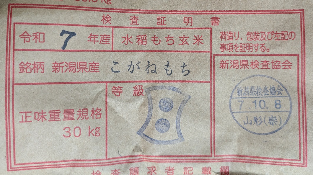 令和7年新もち米”新潟県佐渡産こがねもち”入荷しました!!