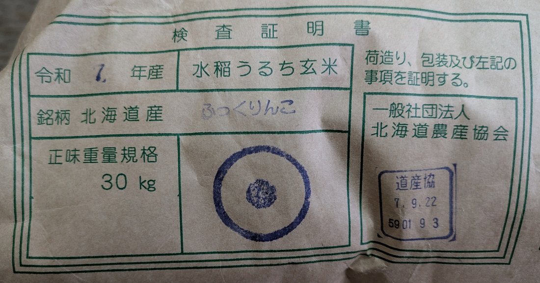 令和7年新米”北海道産特別栽培米ふっくりんこ”が入荷しました。