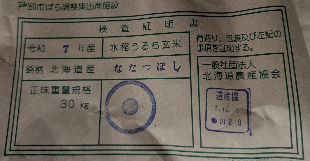 令和7年”北海道産高度クリーンななつぼし”入荷しました!!